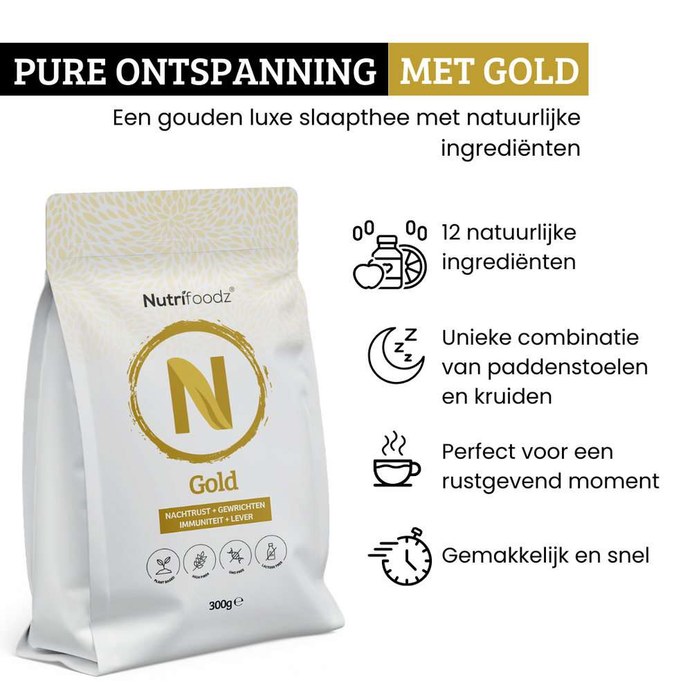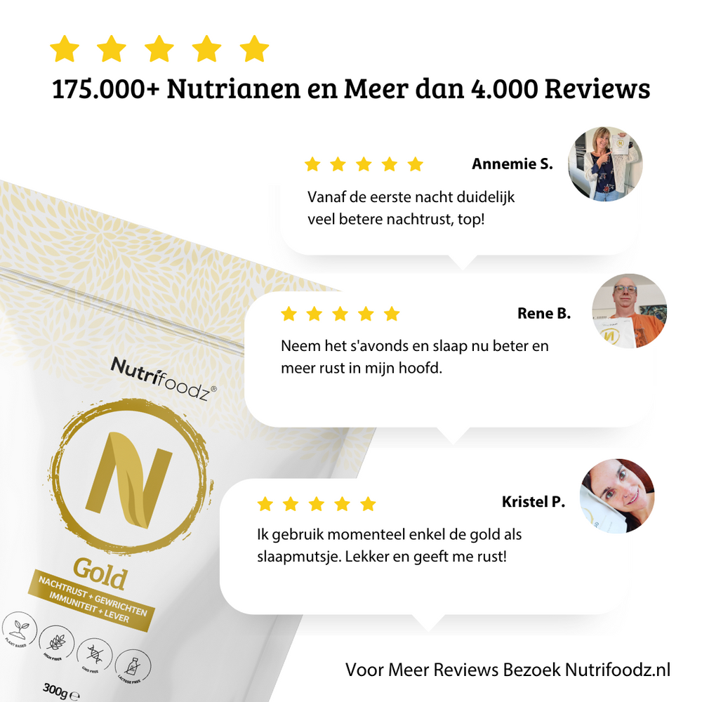 "De perfecte warme drank voor het slapengaan! Smaakt geweldig met water of amandelmelk. Gold is onderdeel van mijn nieuwe avondritueel voor de beste nachtrust." Heelrijk in combinatie met Greens detox en Red juice!"