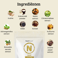 (500 mg), ashwagandha extract (300 mg), citroenmelisse extract (300 mg), kurkuma