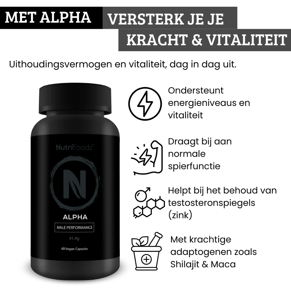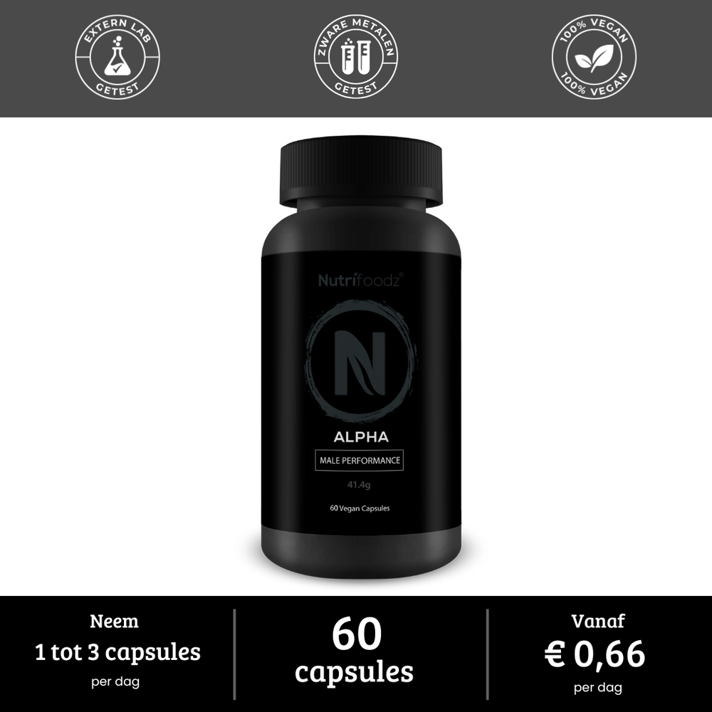 Één potje Nutrifoodz®ALPHA bevat 60 vegan capsules.