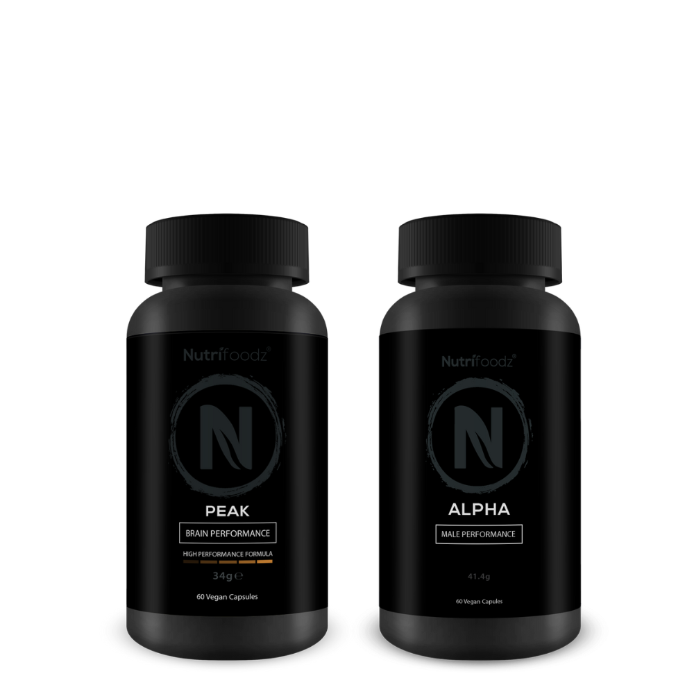 Een potje Nutrifoodz PEAK weegt 48g en bestaat uit 60 Vegan capsules.