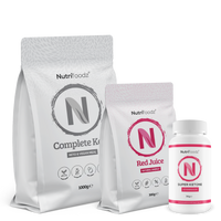 Red Juice bevat 300g en dus goed voor 60 porties.